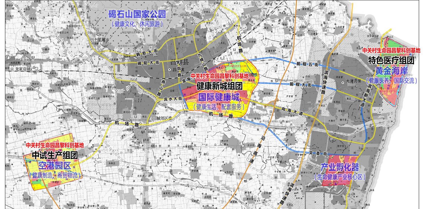 2019年4月昌黎县政府、中关村生命园、金汇通控股集团三方就昌黎科创基地投资建设正式签约,借助北戴河生命科学创新示范区覆盖优势,与北京中关村生命园合作,服务生命园产业外溢需求。基地规划两区一城,产业项目主要落地黄金海岸和空港,并在昌黎县城建设产业配套生活新城。项目占地5600亩,总投资预计达230亿。
